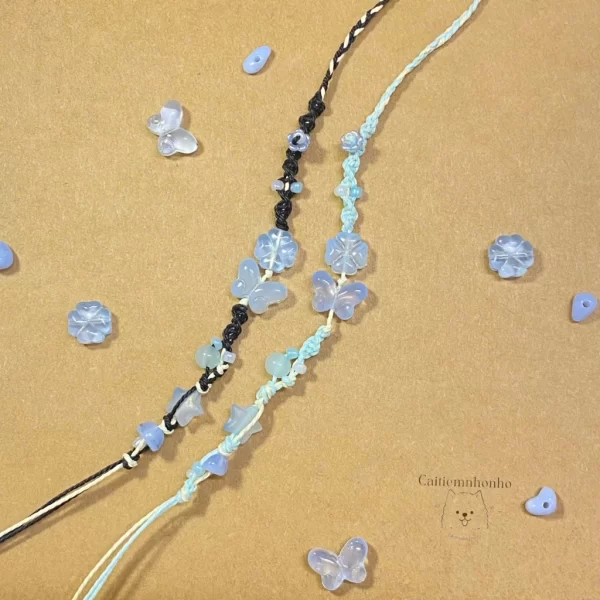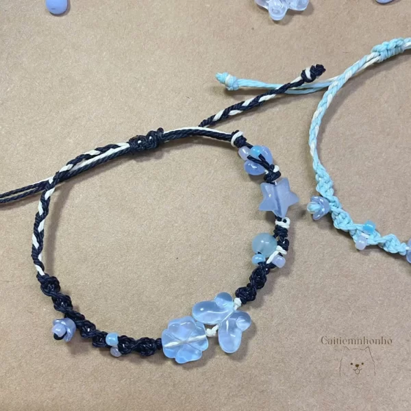 Dây đan thủ công: Mỗi sợi dây được chọn lọc kỹ lưỡng, kết hợp màu sắc hài hòa (đen – kem hoặc xanh – trắng), dễ phối đồ, không phân biệt giới tính.